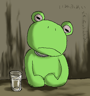 カエルの中身「あーあ毎日1時間でいいから絶好のタイミングでやる気の神様とネタの神様降ってきてくんないかなー。ついでに背景の神様もよろしくおねがいします!」(むりむり)